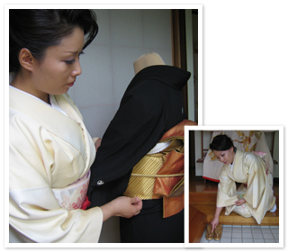 - 所作(立ち振る舞い、和の動き、たすきがけ他)が組み込まれていますので着上る頃には身に付きます。